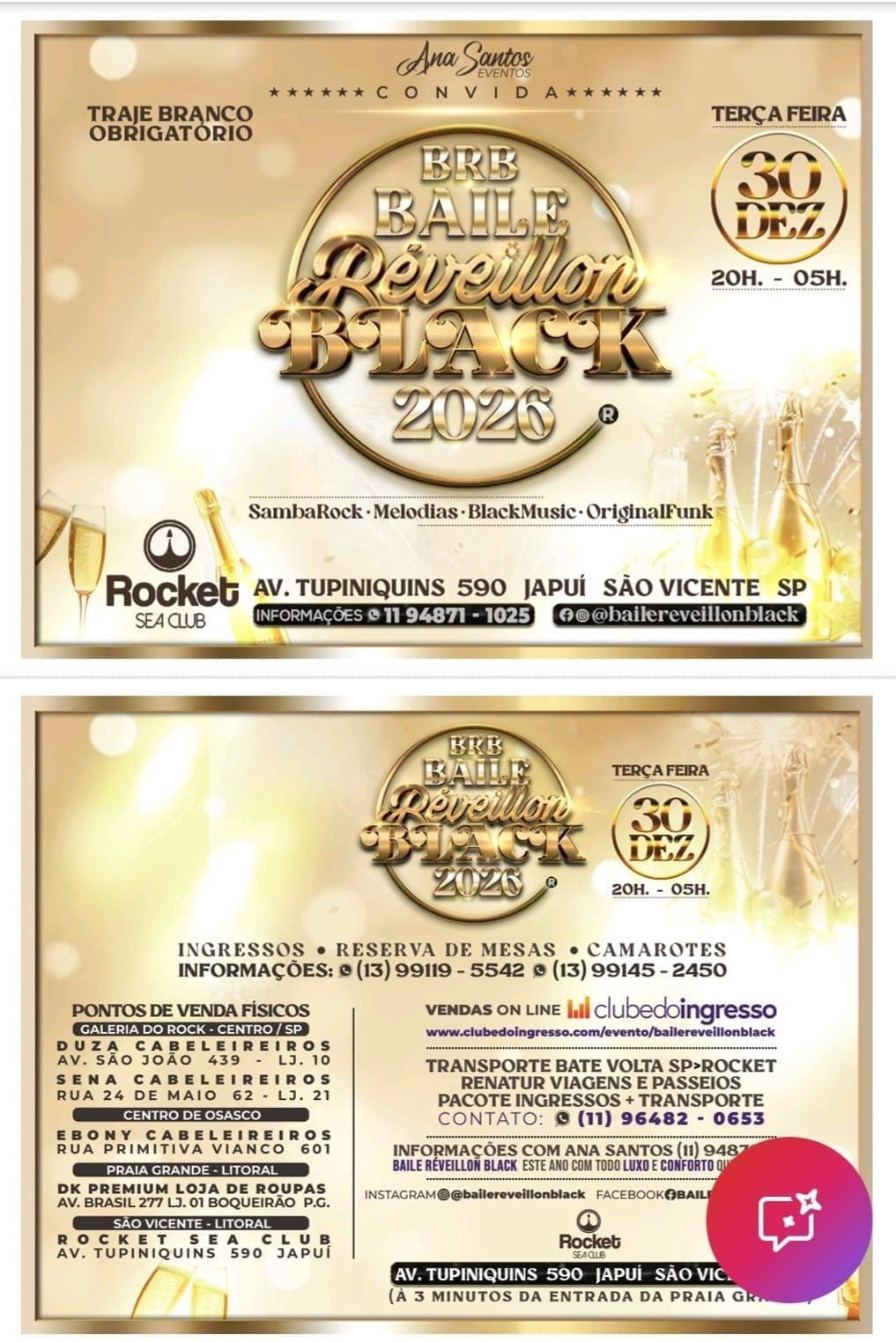 7ª edição do BAILE RÉVEILLON BLACK 2026 na cidade de São Vicente- Litoral/SP